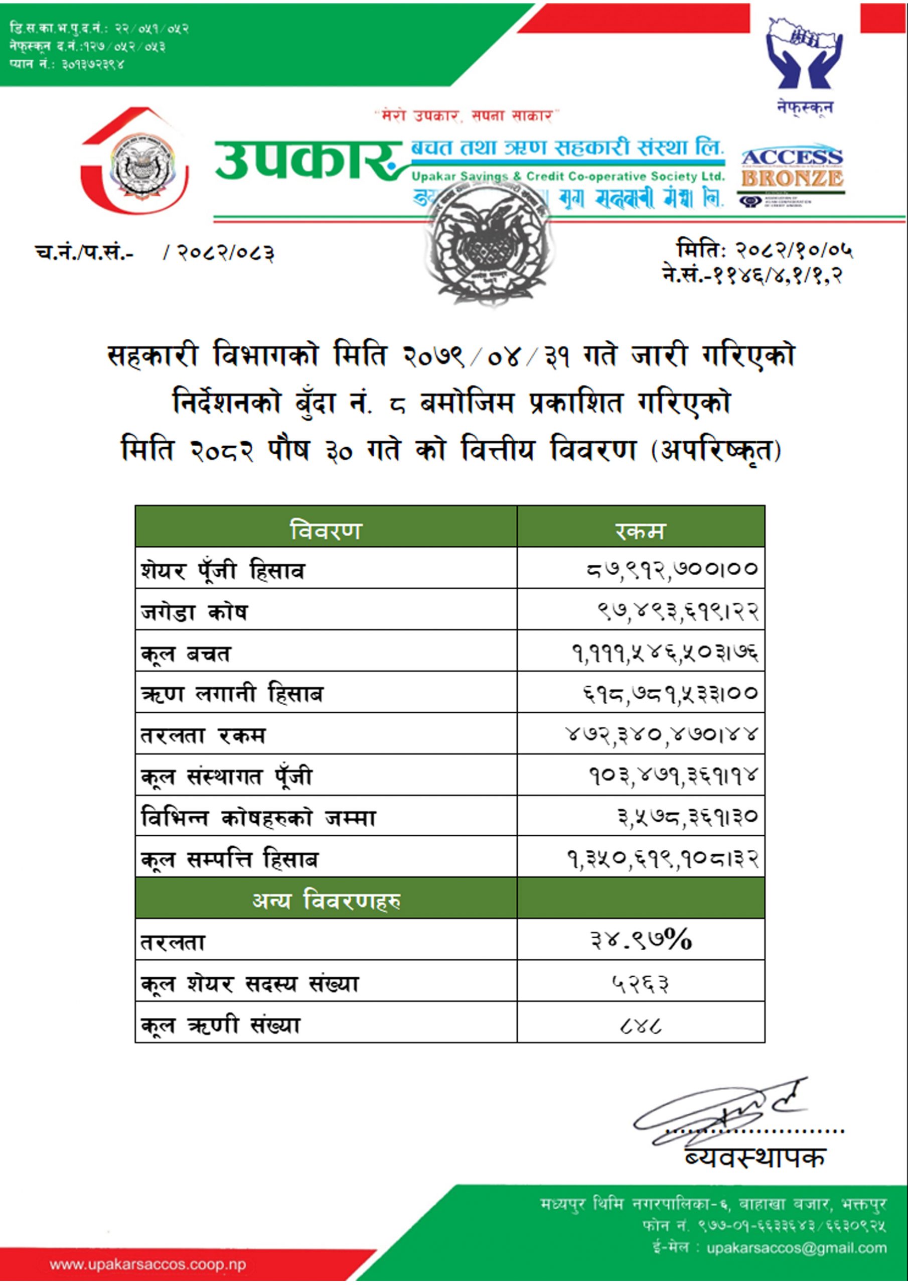 UPAKAR SAVINGS AND CREDIT CO-OPERATIVE SOCIETY LTD. is one of the oldest saving and credit organization in Madhyapur Thimi